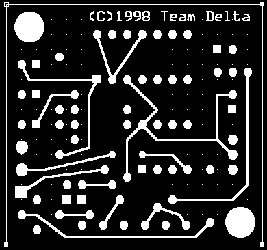 A significant part of this exercise was obtaining a small run of PC boards for this project. So I gave the ExpressPCB company a shot after learning of their service on the comp.robotics.misc newsgroup. Hey this is cool: you download a free program, do the circuit layout on your PC and then submit it right for manufacturing online. The boards showed up two days later, and were tops. | |
