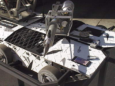 Oh, and did I mention that the Alexander blasted through the middleweight boundary a few months ago? Some of you correctly challenged my weight claims in previous E-mails. You were, of course, correct: there is no way I could pack all this stuff in 100 lbs. We're running light at around 143 right now, but I'm sure we'll find more pointy appendages to slap on between now and the event. I felt it best to continue the deception in the interest of not alerting any heavyweight competitors (sorry Greg).