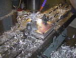 From chop-sawed block of aluminum to squared cube in 20 minutes. This became the mounting base for the drive motor; alignment was very important.