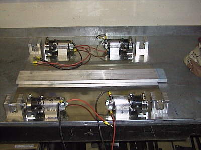 The base plate is sheared from a giant sheet of 7075 aluminum; very stiff. Holes for the bearing block and motor mounts were scribed and then drilled on the mill. | ![]() |