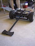 There were real problems with this robot when it was done. First, too much weight hung forward over the drive wheels (on the swivel caster) so I lost a lot of traction, making it even harder to drive. Second the geometry of that 9 mile long weapon made it impossible to get lined up on anyone, or have to torque to keep it lined up when in contact with an opponent.
